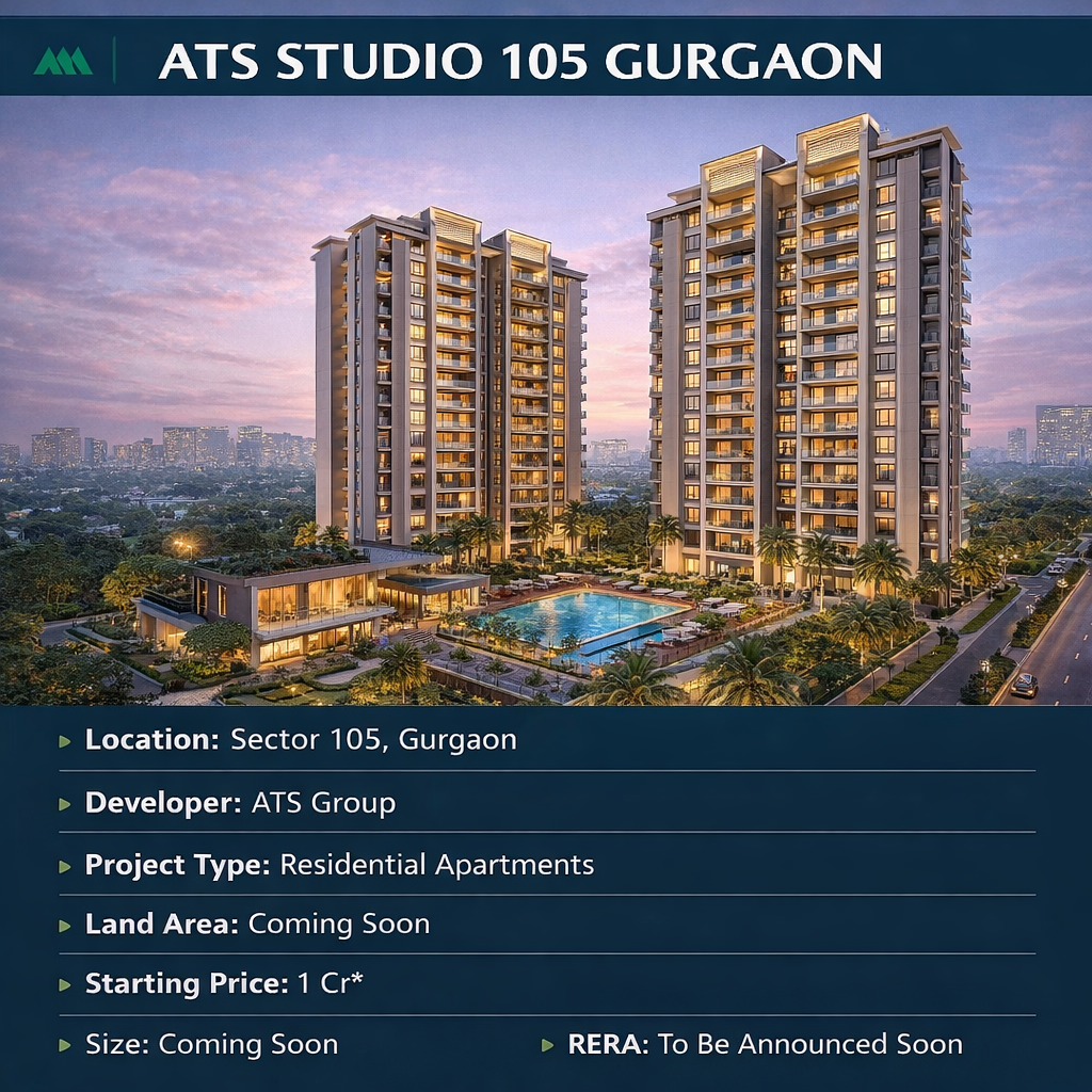 ATS Studio 105 Gurgaon is a new premium residential project in Gurgaon by the well-known ATS Group. Located in the prime area of Sector 105, Gurgaon, this project is designed to give your family a comfortable and modern living experience. With thoughtful design, great connectivity, and a friendly community, ATS Studio 105 Gurgaon offers the perfect home for families, professionals, and investors looking for a quality residential address in Gurgaon's growing city.